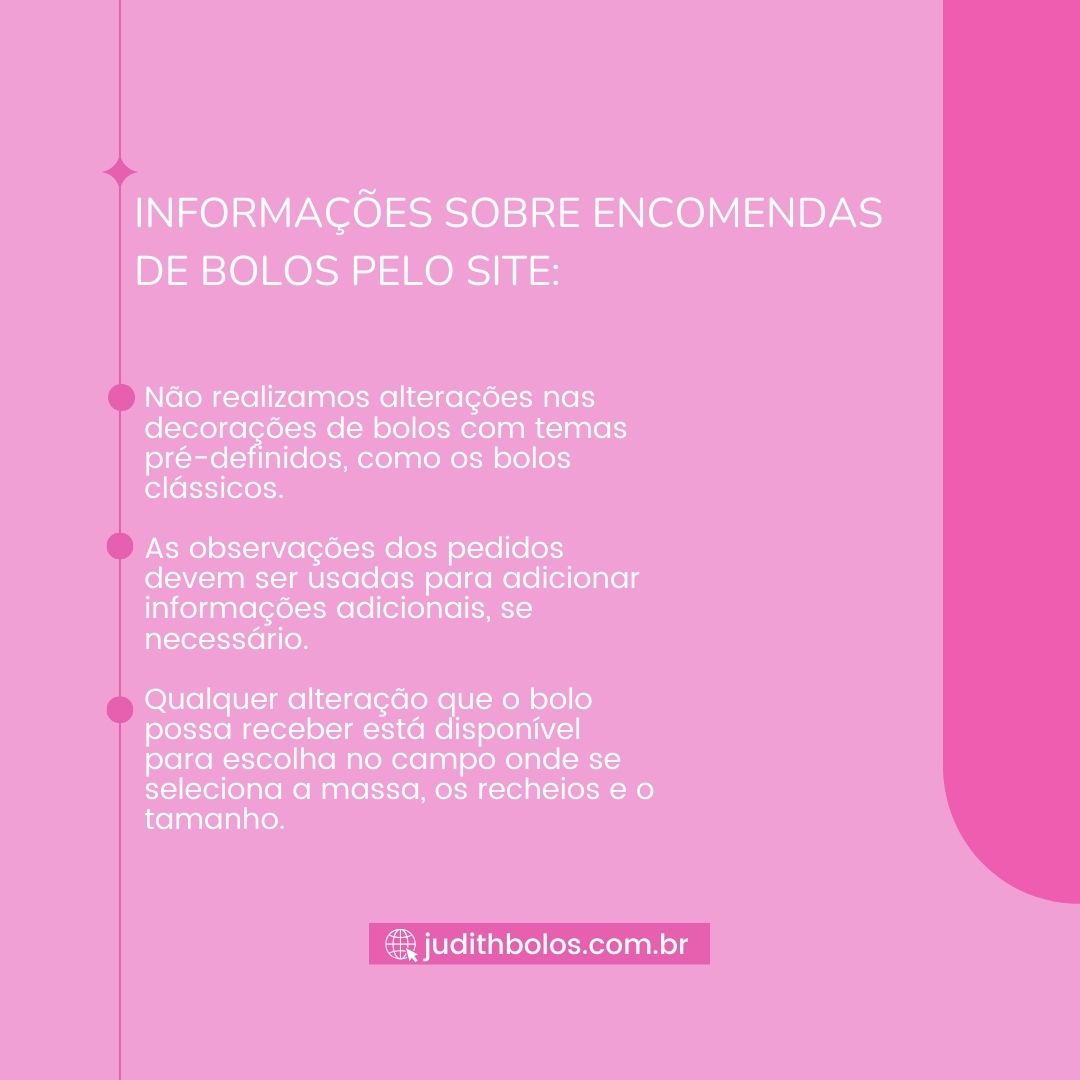 As observações dos pedidos devem ser usadas para adicionar a idade e nome que será colocado no bolo.